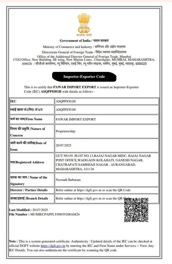 We operate with complete transparency and hold relevant certifications to ensure safe, compliant, and trustworthy exports.